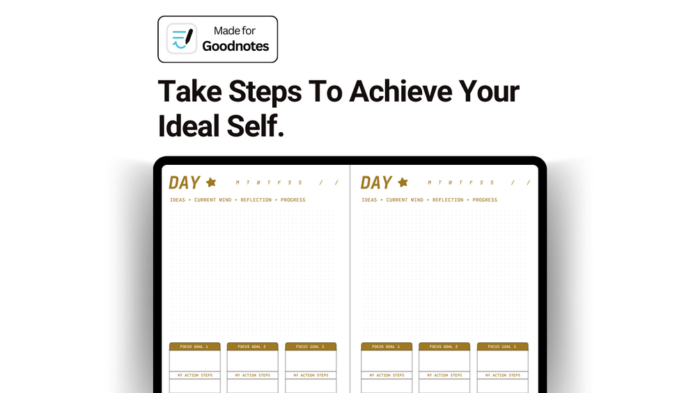- Track Your Ideas: Brain dump your daily ideas, reflections, and progress. Improve clarity and reduce mindset blocks by simply jotting down what matters to you. Use the three focus goal boxes to list your priorities and steps to accomplish them, building consistent habits, improve day by day.